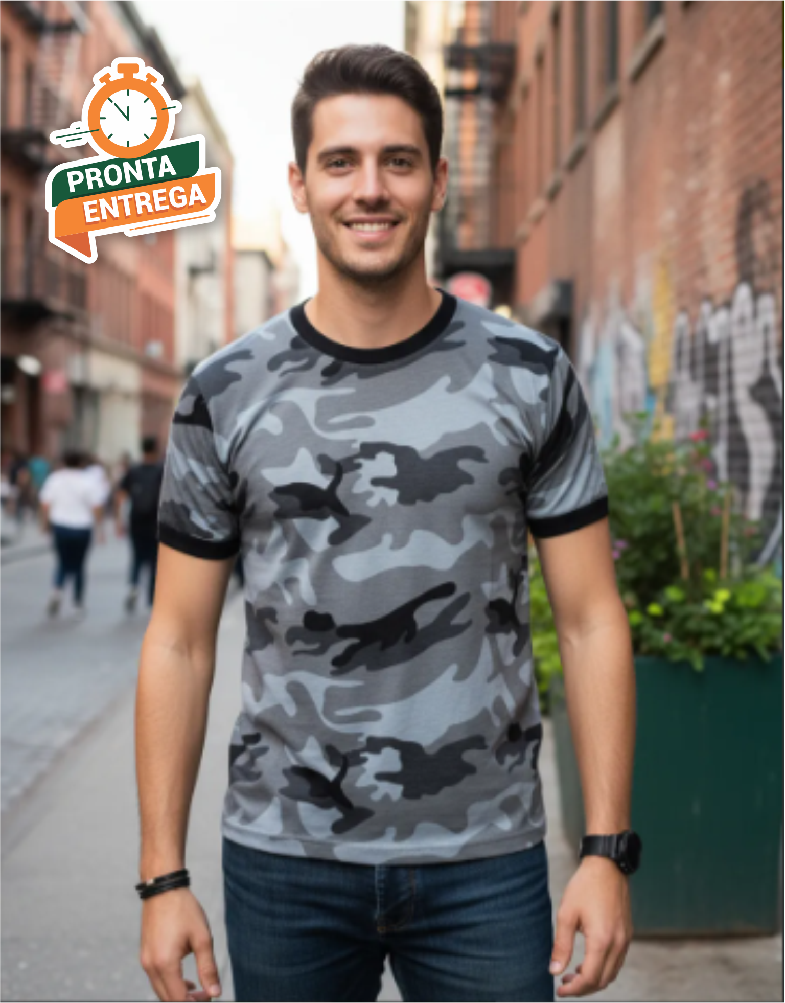1x Camiseta no Camuflado Urbano em Algodão.